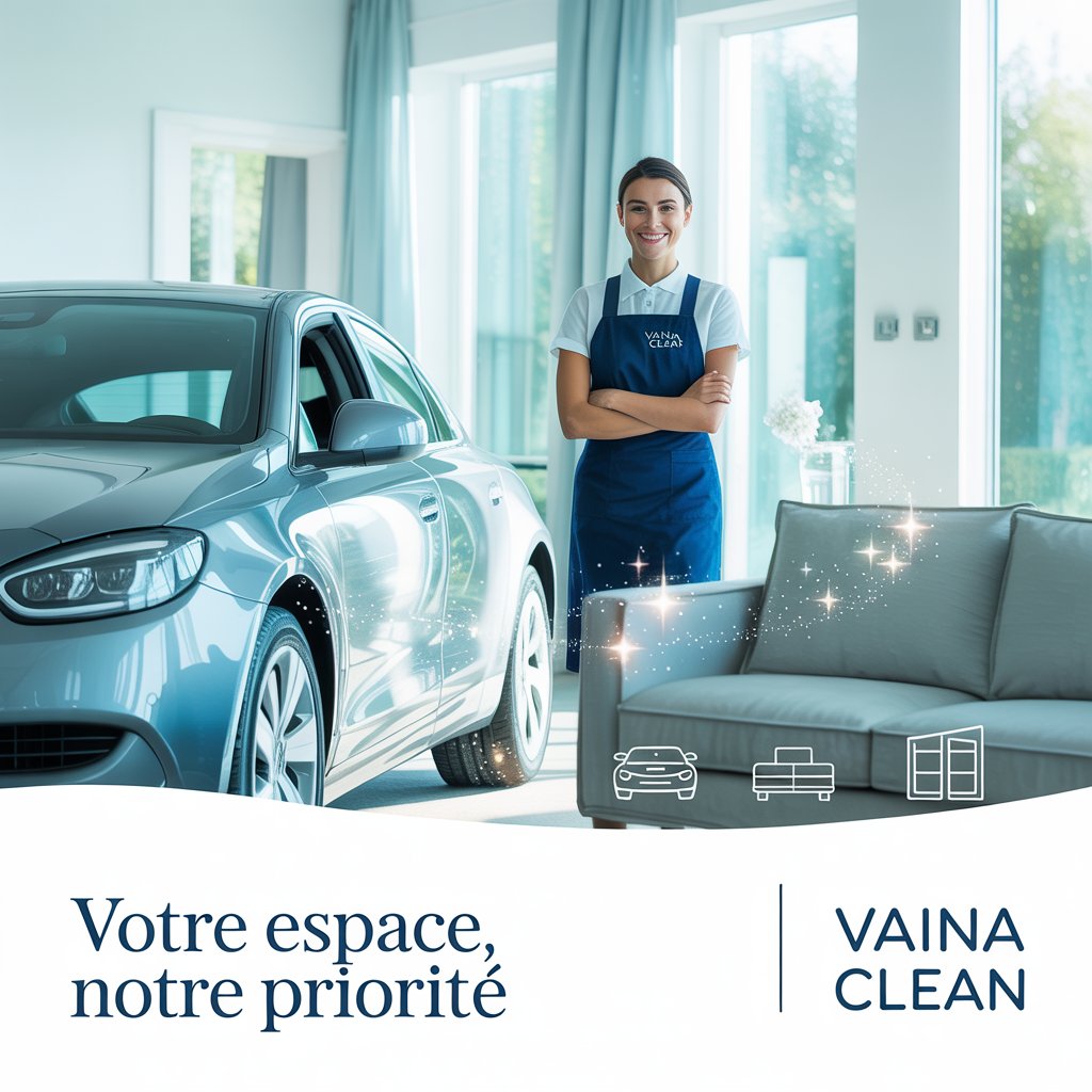 Chez Vaïna Clean, nous mettons l’excellence, la confiance et le respect de votre espace au cœur de chaque intervention. Que ce soit pour votre voiture, vos textiles d’ameublement ou vos vitres, nous vous garantissons un résultat professionnel, propre et durable.